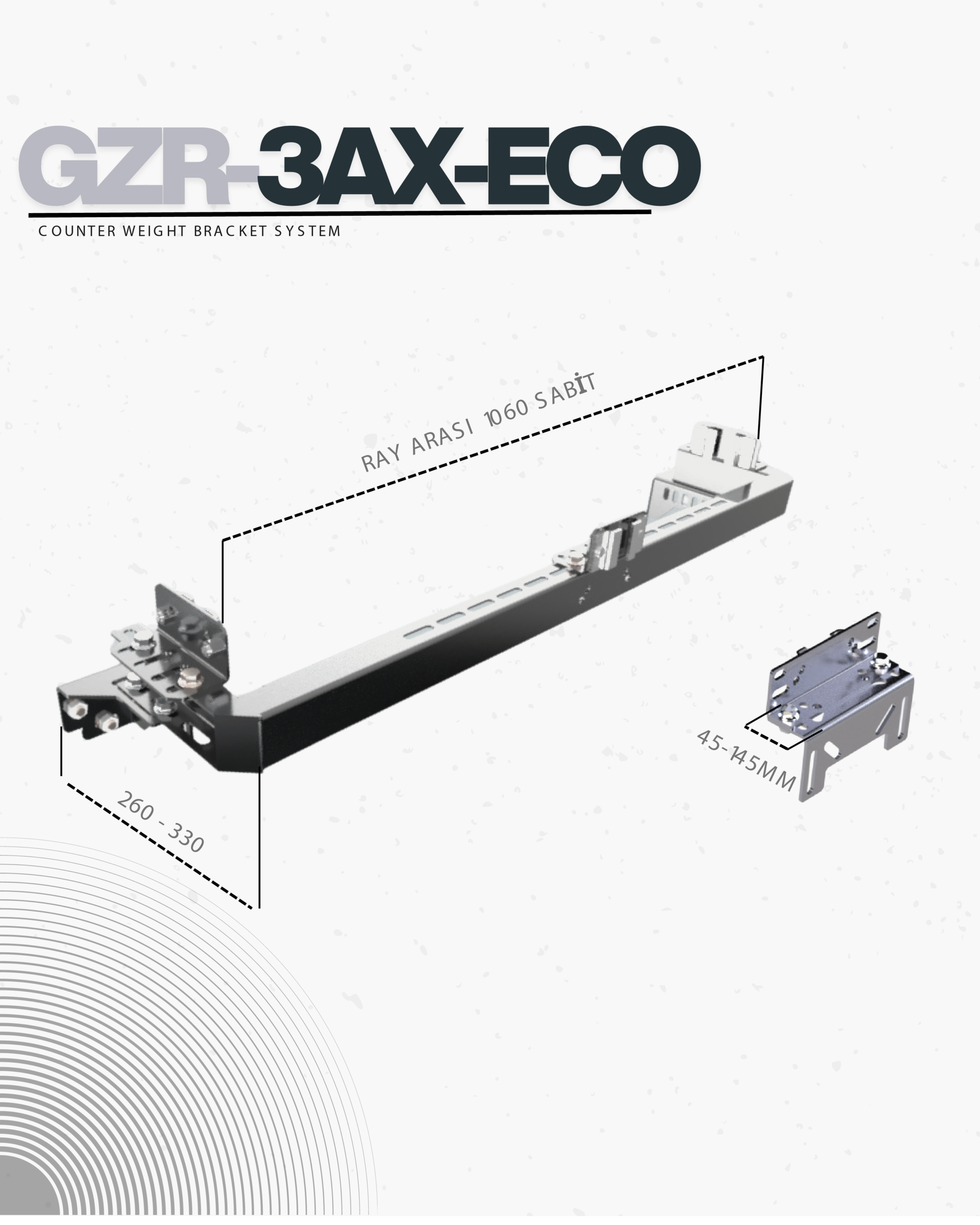 Bu model, tek baritli ağırlık karkaslarına göre optimize edilmiştir. Ağırlık ray arası 1060 mm sabittir. Karşı ana ray konsolu ise 45–145 mm arası açılım sağlamaktadır.